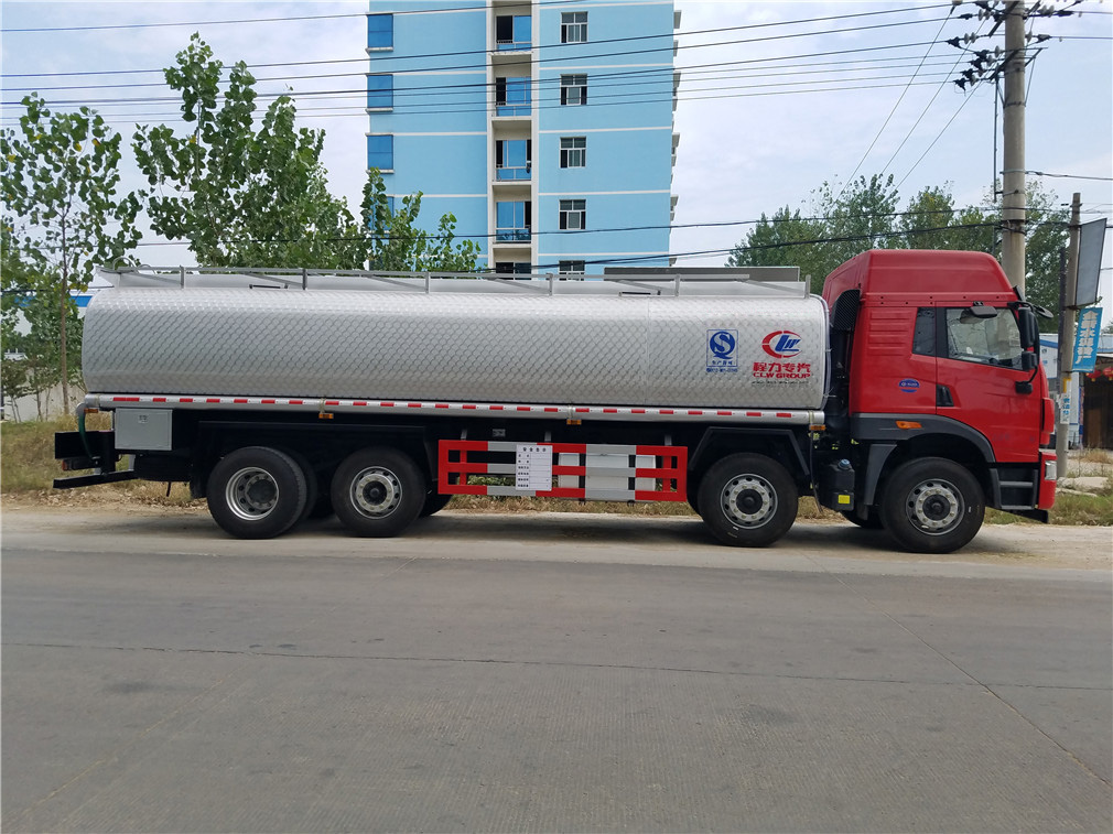 | 其他 | 該車適用于危險品運輸,運輸介質:汽油,煤油,柴油。介質密度分別為:0.7噸/立方米, 0.8噸/立方米, 0.83噸/立方米。類項號:3;罐體有效容積:25.73立方米, 罐體外形尺寸(長×長軸×短軸)(mm)為:8500×2250×1650。防護材料:Q235A碳鋼,連接方式:左右側面及后下部防護均采用焊接連接,后部防護斷面尺寸(mm):135×50,后部防護離地高度(mm):480。僅采用底盤子午線輪胎和帶ABS的底盤; 該車前輪安裝盤式制動器,裝配限速裝置,限速79km/h。安裝帶有衛星定位功能的行駛記錄儀。ABS系統生產廠家:浙江萬安科技股份有限公司,型號:VIE ABS-Ⅱ。油耗對應關系:38.89(CA6DK1-28E5),罐體顏色和文字噴涂位置可變化。選裝平頂駕駛室。選裝不帶走臺。選裝輕型擋泥板樣式。 | ||