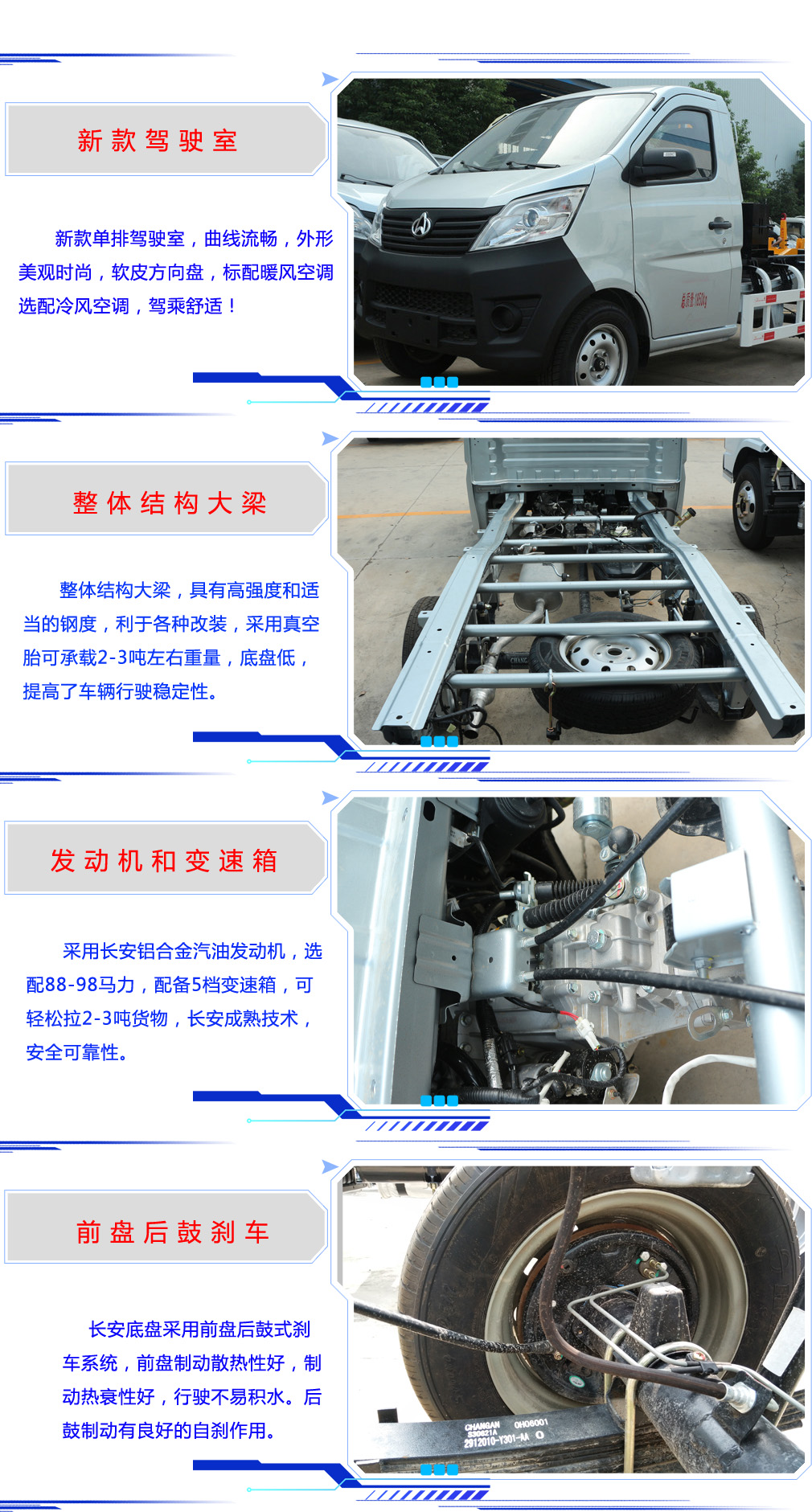 | 其他 | 帶OBD系統,隨底盤選裝駕駛室。文字噴涂位置、車輛顏色和局部細節可變化。 | ||