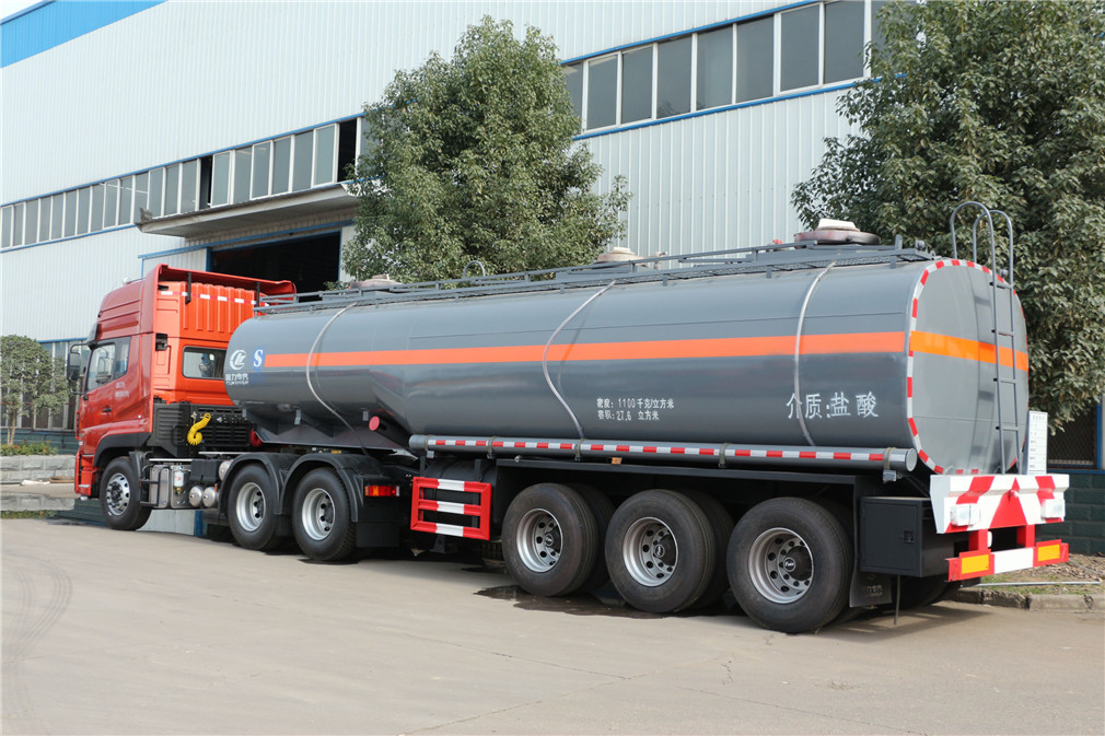 | 其他 | 罐体有效容积:27.6立方米,介质:盐酸,类项号:8,密度:1.1吨/立方米,类项号:8,罐体外形尺寸(长×长轴×短轴)(mm):罐体前端:3750×2440×1540,罐体后端:5850×2440×1840。采用适用于牵引危险品运输半挂车的牵引车。防护材料:Q235A碳钢,连接方式:左右侧面及后下部防护均采用焊接连接,后部防护断面尺寸(mm):120×50×5,后部防护离地高度(mm):520。ABS生产厂家:焦作博瑞克控制技术有限公司,ABS型号:G ABS。 | ||