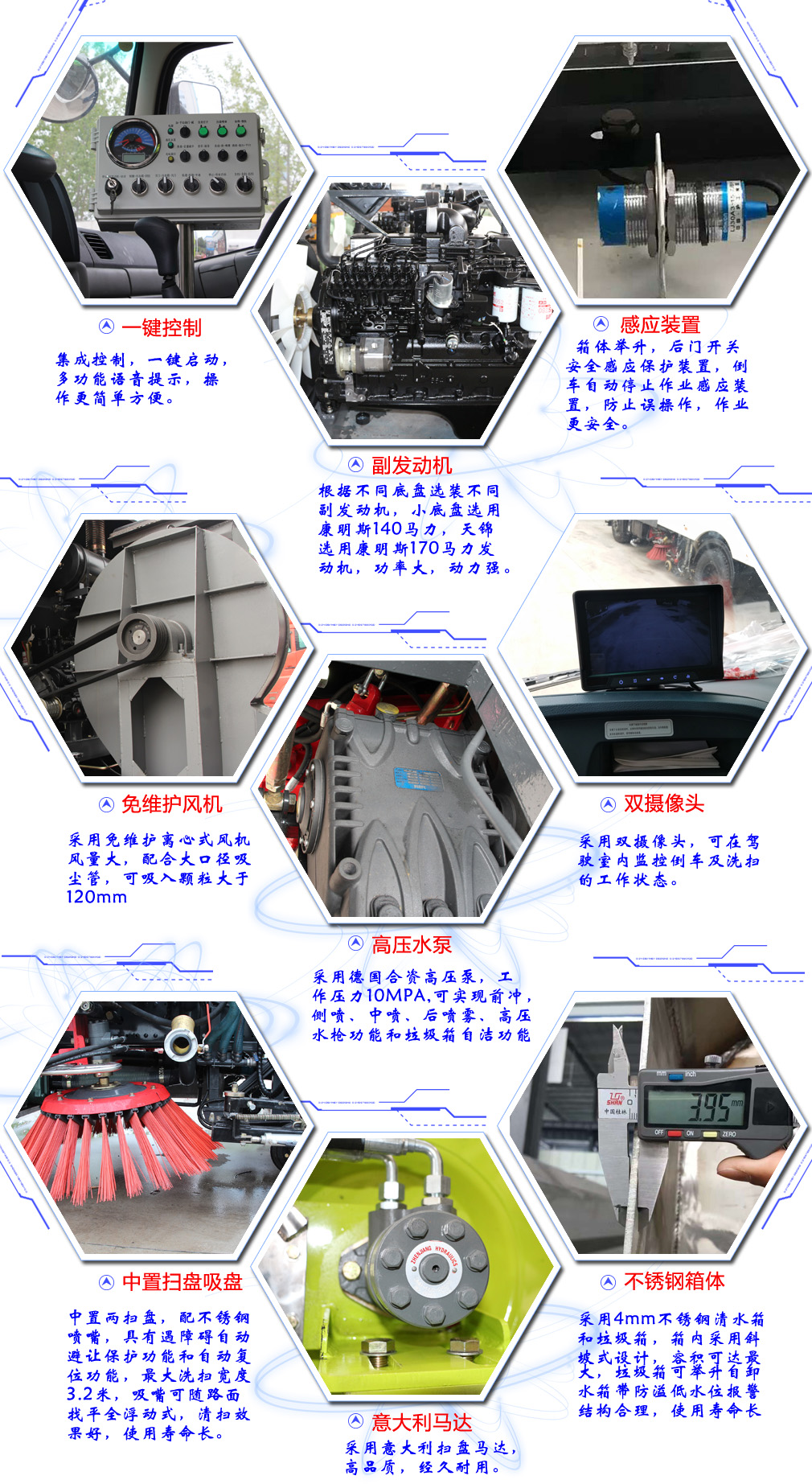 | 其他 | 随底盘选装驾驶室。防护材料:Q235A碳钢,连接方式:左右侧面防护与专用装置相干涉故豁免,后下部防护与副梁车架采用螺栓连接,后部防护断面尺寸(mm):240×50,后部防护离地高度(mm):480。ABS型号:3631010-C2000,4460046440;生产厂家:东科克诺尔商用车制动系统(十堰)有限公司,威伯科汽车控制系统(中国)有限公司。整车长/轴距/后悬对应关系为(mm):8580/5000/2150;8280/4700/2150;8050/4700/1920. | ||