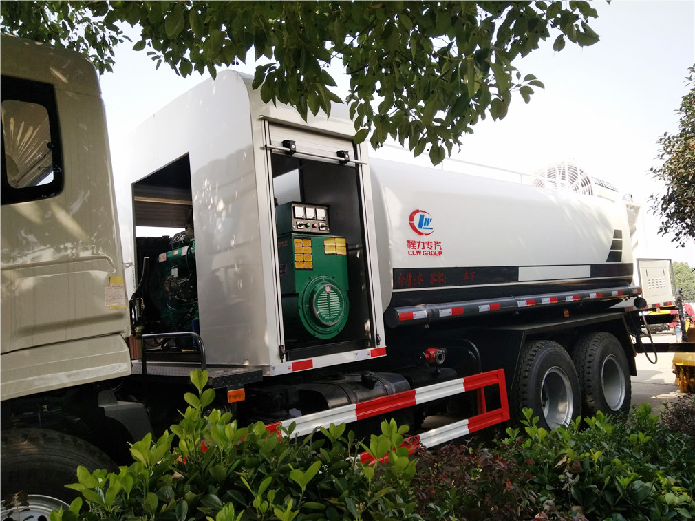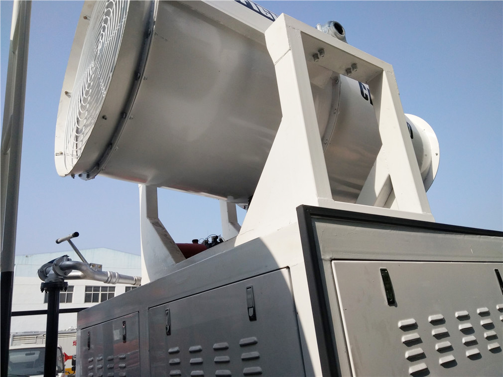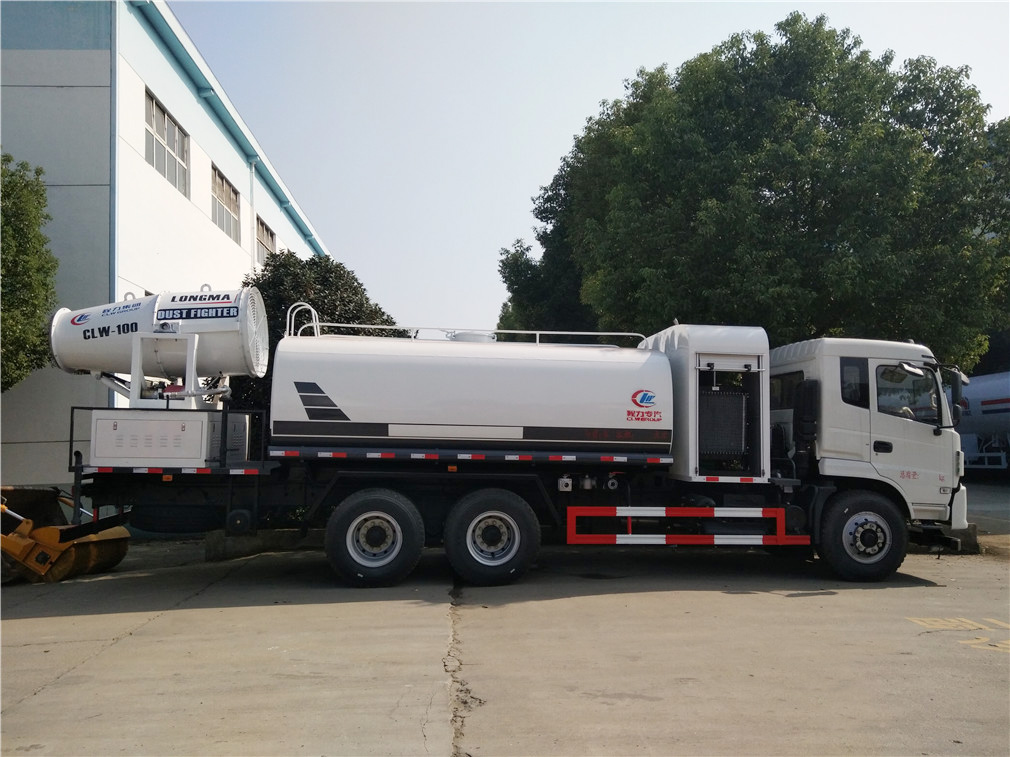| 其他 | 1,罐體有效容積:13.44立方米,罐體尺寸(mm):4500×2400×1600;整車長/前懸的對應關系為(mm):10640/1515,10575/1450,10375/1250.2,側,后防護裝置材料材質:Q235A,側,后防護均用連接,后部防護裝置斷面尺寸(寬×高)60×150(mm),后部防護離地高度:510mm;3, ABS生產廠家: 東科克諾爾商用車制動系統(十堰)有限公司,型號:3631010-C2000;4,隨底盤選裝駕駛室,選裝駕駛室遮陽板與側面臥鋪開窗口;5,文字噴涂位置,車輛顏色及局部細節可變化。5、專用裝置:罐體和噴霧機,主要用于抑塵。選裝不同的外形圖片。專用裝置為抑塵霧炮,型號為LM-40,生產廠家為湖北龍馬汽車裝備有限公司。 | ||