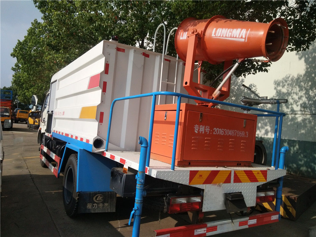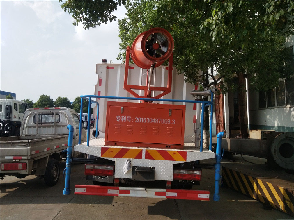 | 其他 | 该车主要用途为抑尘降霾.专用装置为抑尘雾炮,型号及厂家:LM-40,湖北龙马汽车装备有限公司.介质: 水,密度:1000千克/立方米,罐体有效容积:7.1立方米,整车长/前悬/轴距/后悬对应关系为(mm):7050/1070/3650/2330;7380/1250/3800/2330;7600/1320/3950/2330;7980/1450/4200/2330;7960/1130/4500/2330;8160/1130/4700/2330;8560/1130/5100/2330.随底盘选装驾驶室,防护材料:Q235A碳钢,连接方式:左右侧面均采用焊接连接,后下部防护采用螺栓接,后下部护护断面尺寸(mm):50×100,后部防护离地高度(mm):550.装有ABS,ABS生产厂家:东风电子科技股份有限公司制动系统公司;型号:3631010-C2000. | ||